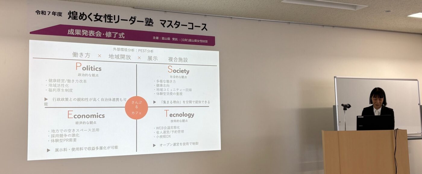 富山県主催の「煌めく女性リーダー塾」にて、弊社の藤原がマスターコース、金子がスキルアップコースの全課程を修了しました。